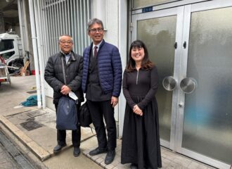 昨日も小雨が降る中、元大阪市会議員の北山良三さんと衆議院議員の宮本たけしさんが弊社にお越しくださいま